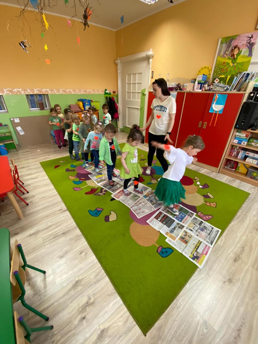 – wspólne śpiewanie hymnu Optymistycznego przedszkola”,