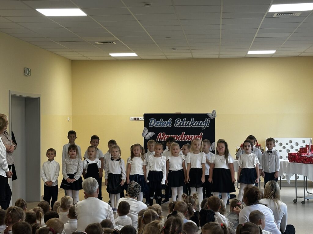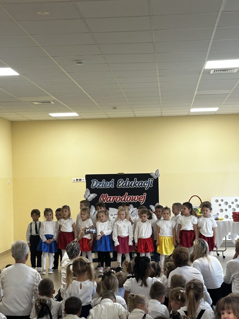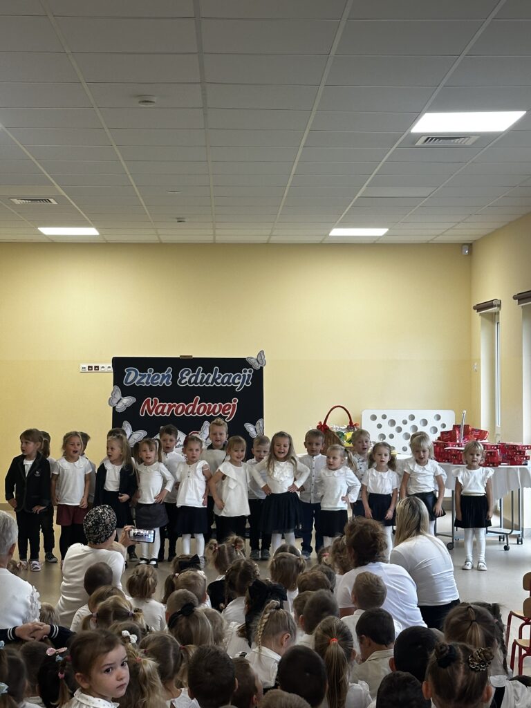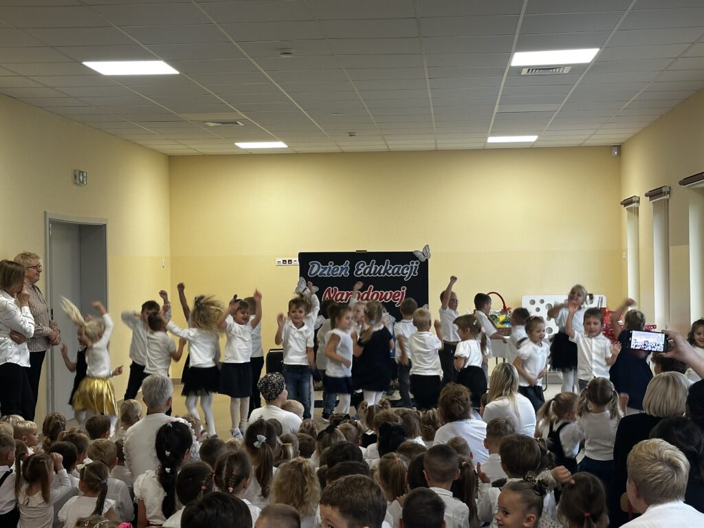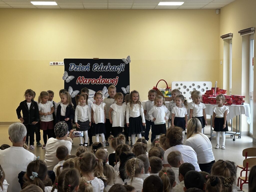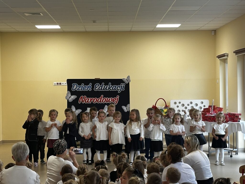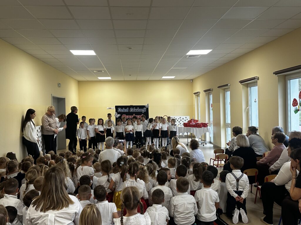 Miniony wtorek – 14 października to był dla nas wyjątkowy dzień. W przedszkolu pamiętamy, że to Dzień Edukacji Narodowej, a więc podziękowania za trud we włożoną pracę składaliśmy wszystkim pracownikom – obecnym i przebywającym na emeryturze. Dziękowaliśmy tak, jak potrafimy – wierszem, piosenką i tańcem 😏. Każde słowo wypowiedziane przez „małych artystów” wzbudzało zachwyt i wzruszenie na twarzach zgromadzonych gości.