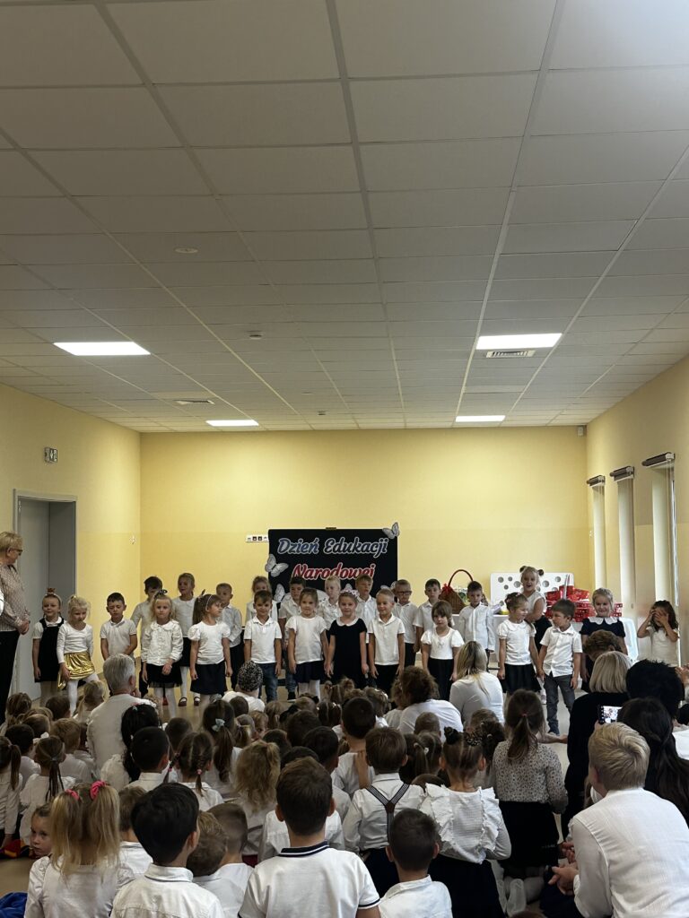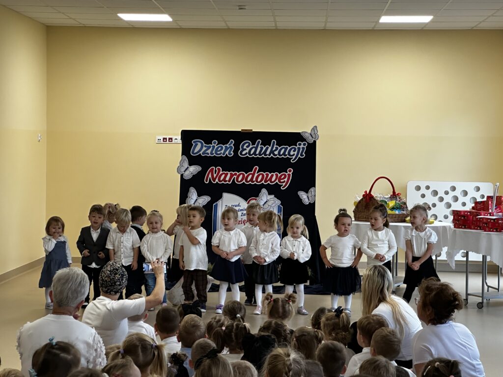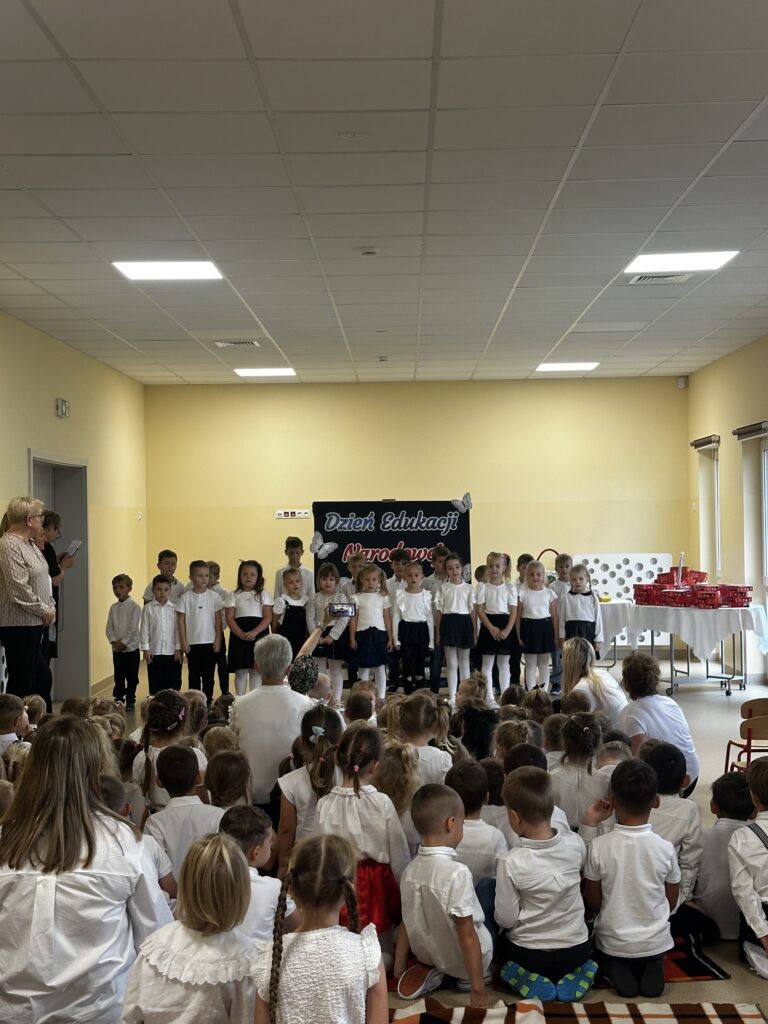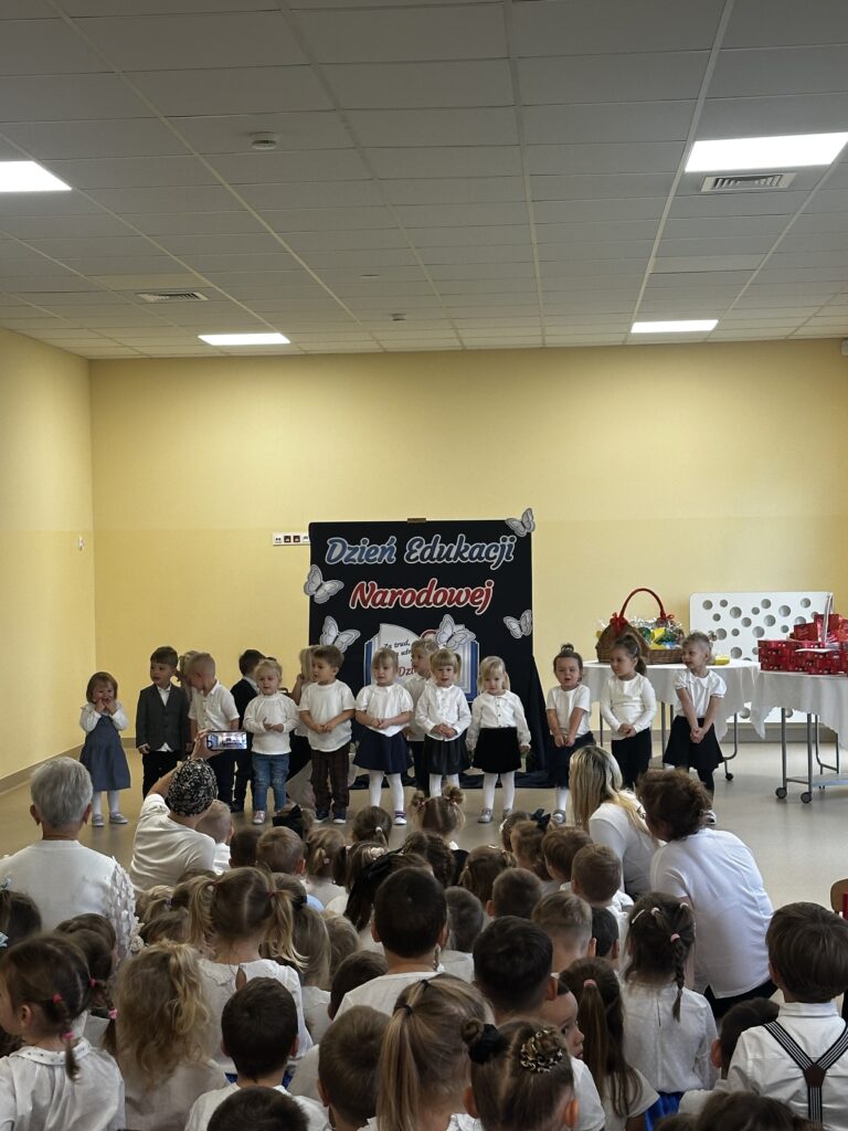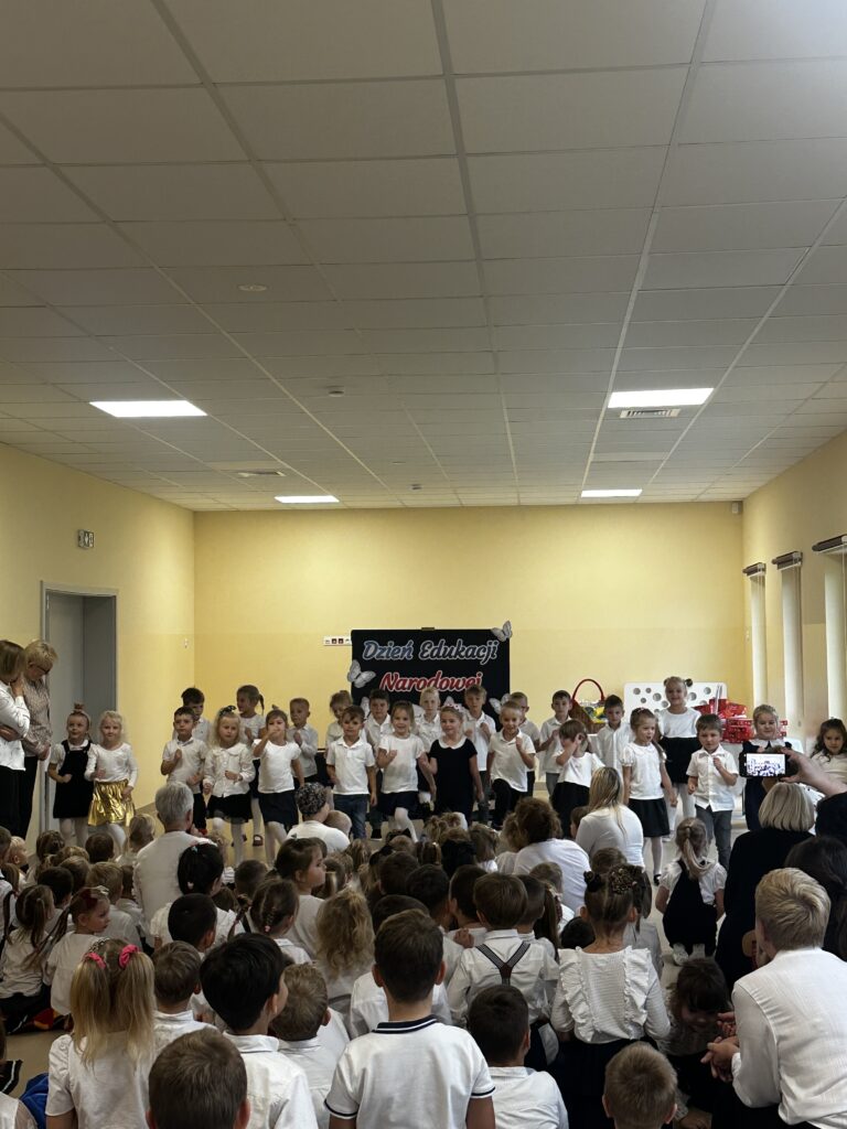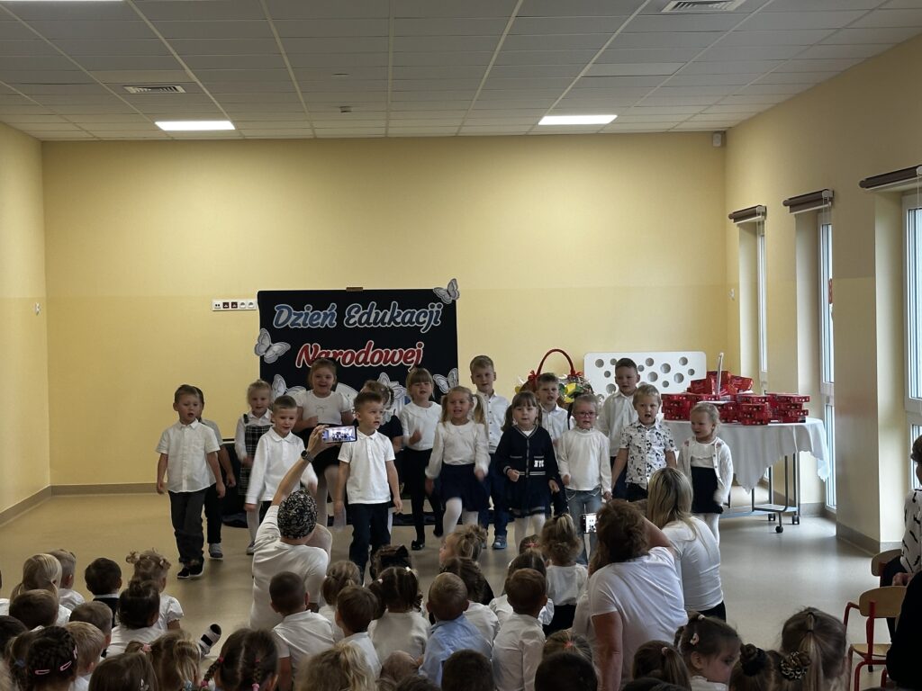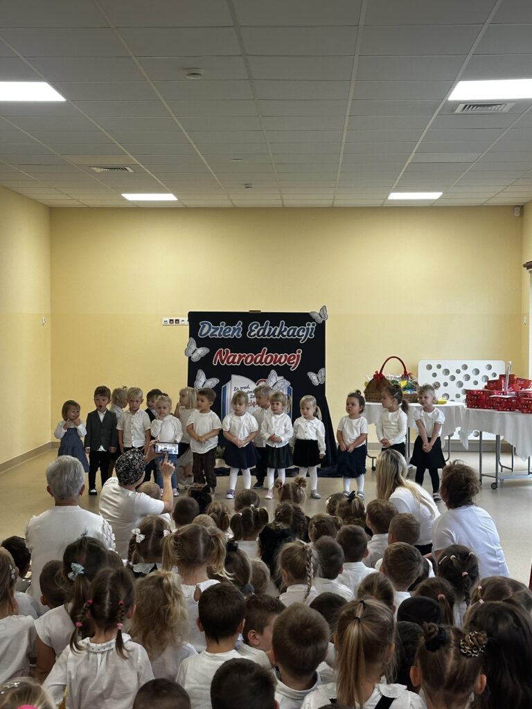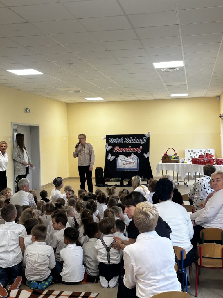 Miniony wtorek – 14 października to był dla nas wyjątkowy dzień. W przedszkolu pamiętamy, że to Dzień Edukacji Narodowej, a więc podziękowania za trud we włożoną pracę składaliśmy wszystkim pracownikom – obecnym i przebywającym na emeryturze. Dziękowaliśmy tak, jak potrafimy – wierszem, piosenką i tańcem 😏. Każde słowo wypowiedziane przez „małych artystów” wzbudzało zachwyt i wzruszenie na twarzach zgromadzonych gości.
