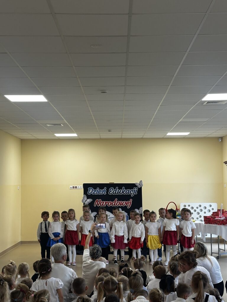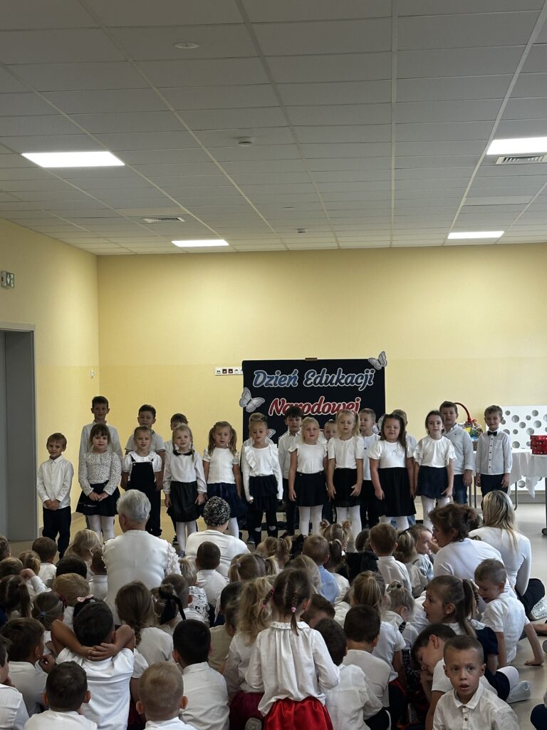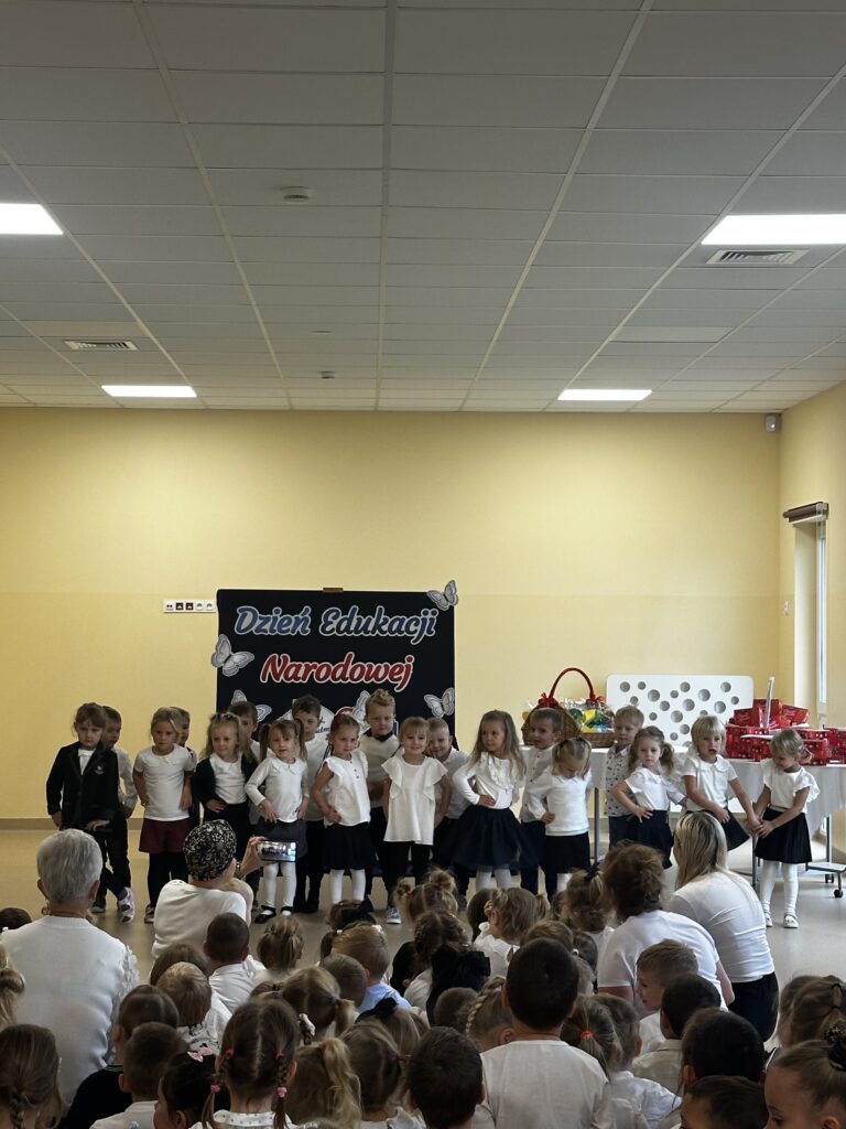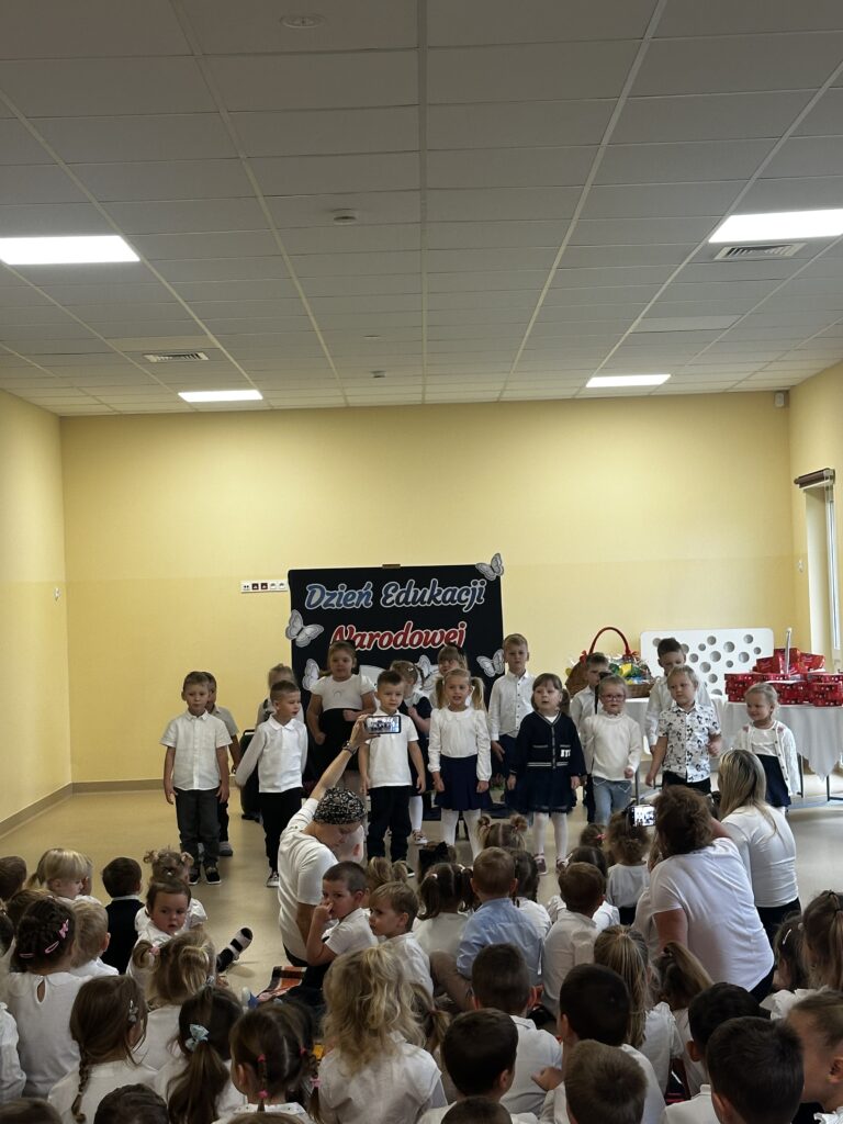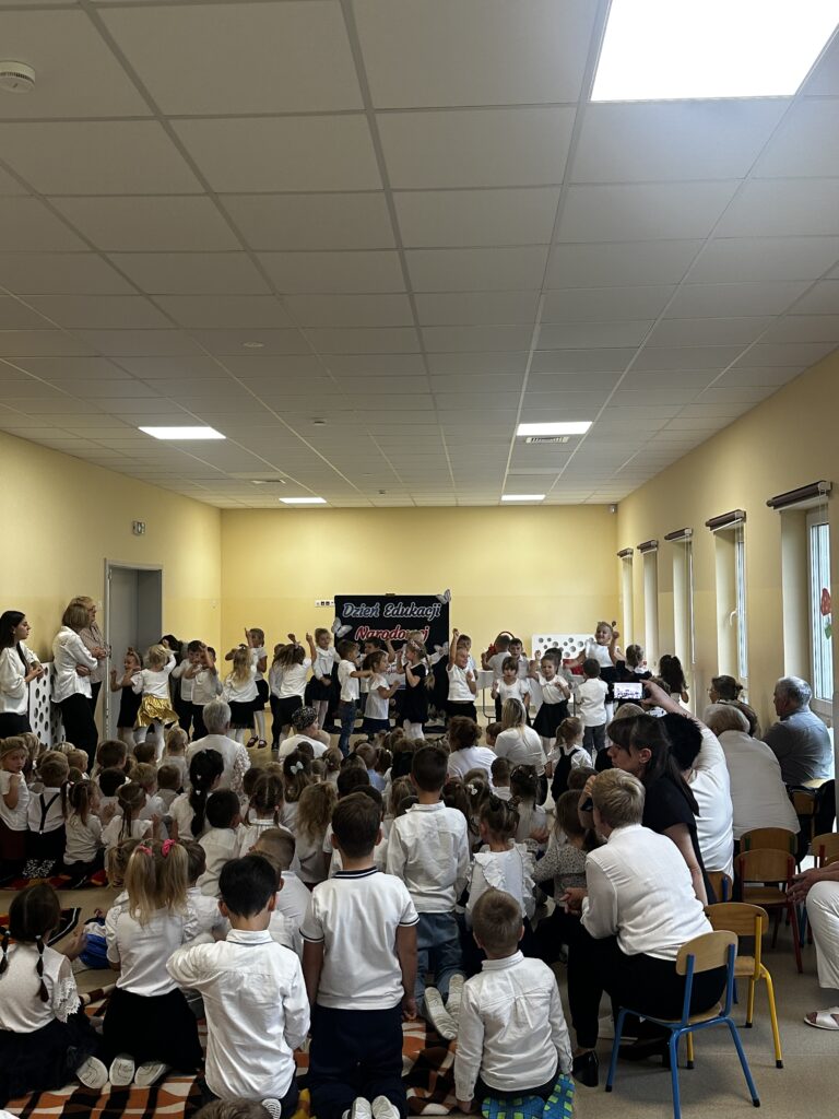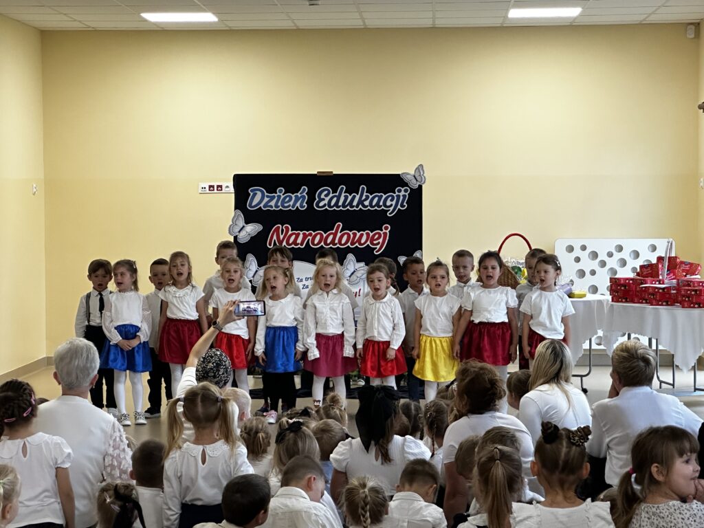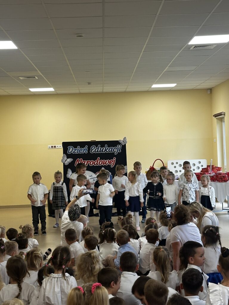 Miniony wtorek – 14 października to był dla nas wyjątkowy dzień. W przedszkolu pamiętamy, że to Dzień Edukacji Narodowej, a więc podziękowania za trud we włożoną pracę składaliśmy wszystkim pracownikom – obecnym i przebywającym na emeryturze. Dziękowaliśmy tak, jak potrafimy – wierszem, piosenką i tańcem 😏. Każde słowo wypowiedziane przez „małych artystów” wzbudzało zachwyt i wzruszenie na twarzach zgromadzonych gości.