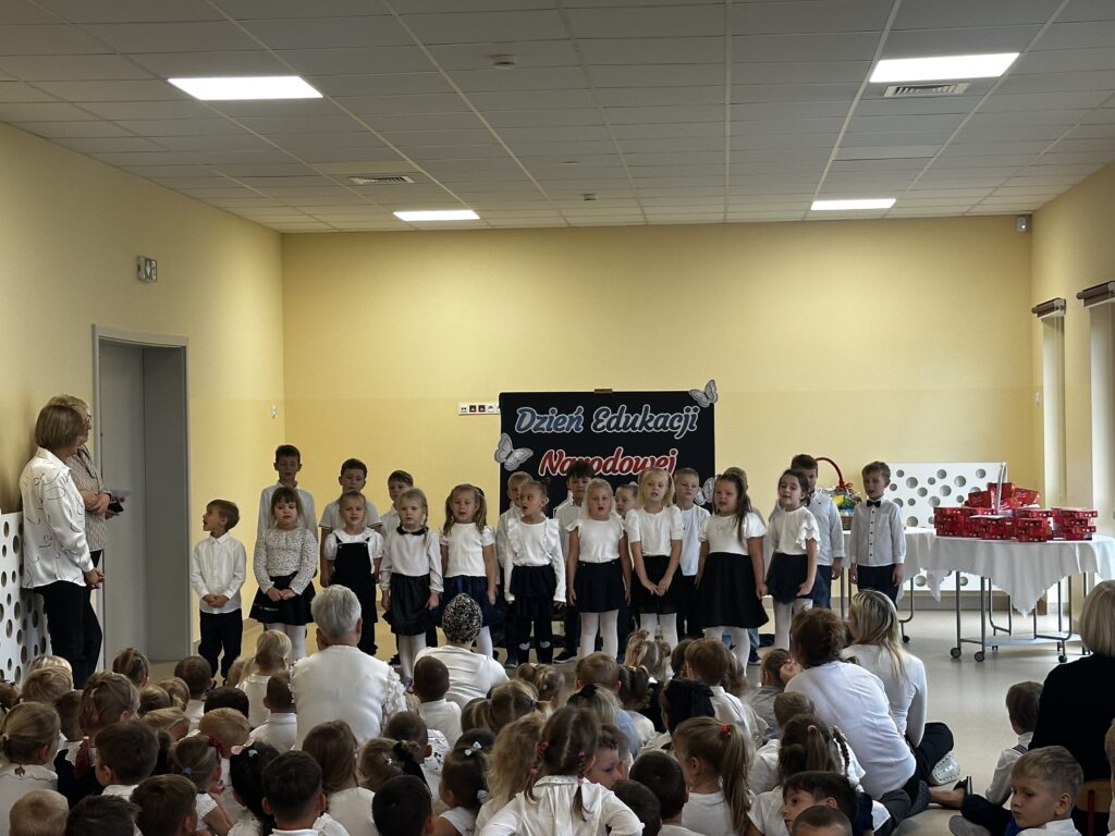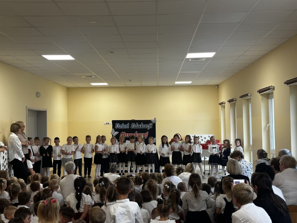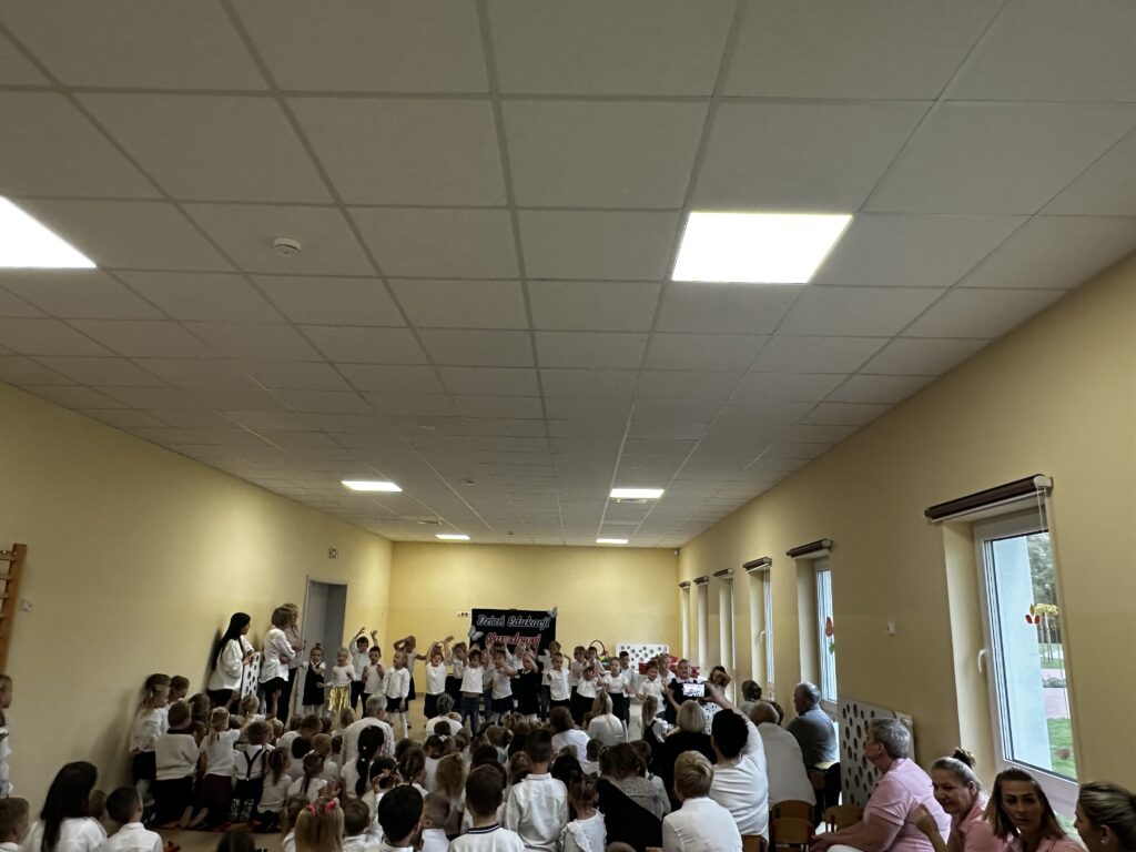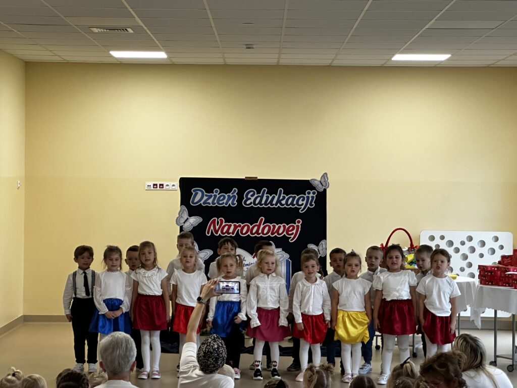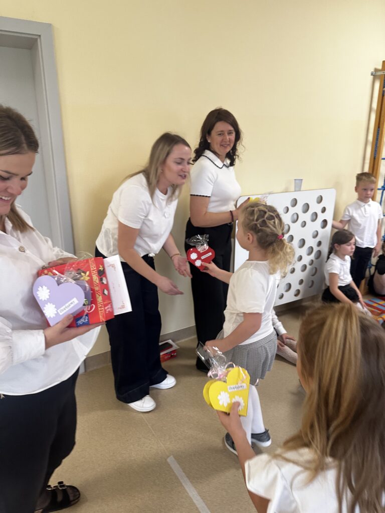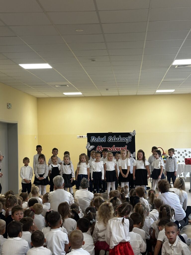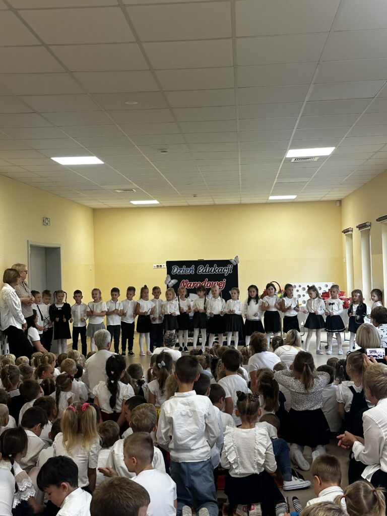 Miniony wtorek – 14 października to był dla nas wyjątkowy dzień. W przedszkolu pamiętamy, że to Dzień Edukacji Narodowej, a więc podziękowania za trud we włożoną pracę składaliśmy wszystkim pracownikom – obecnym i przebywającym na emeryturze. Dziękowaliśmy tak, jak potrafimy – wierszem, piosenką i tańcem 😏. Każde słowo wypowiedziane przez „małych artystów” wzbudzało zachwyt i wzruszenie na twarzach zgromadzonych gości.