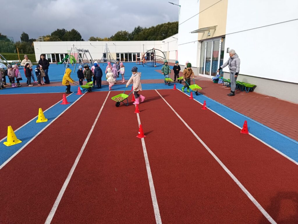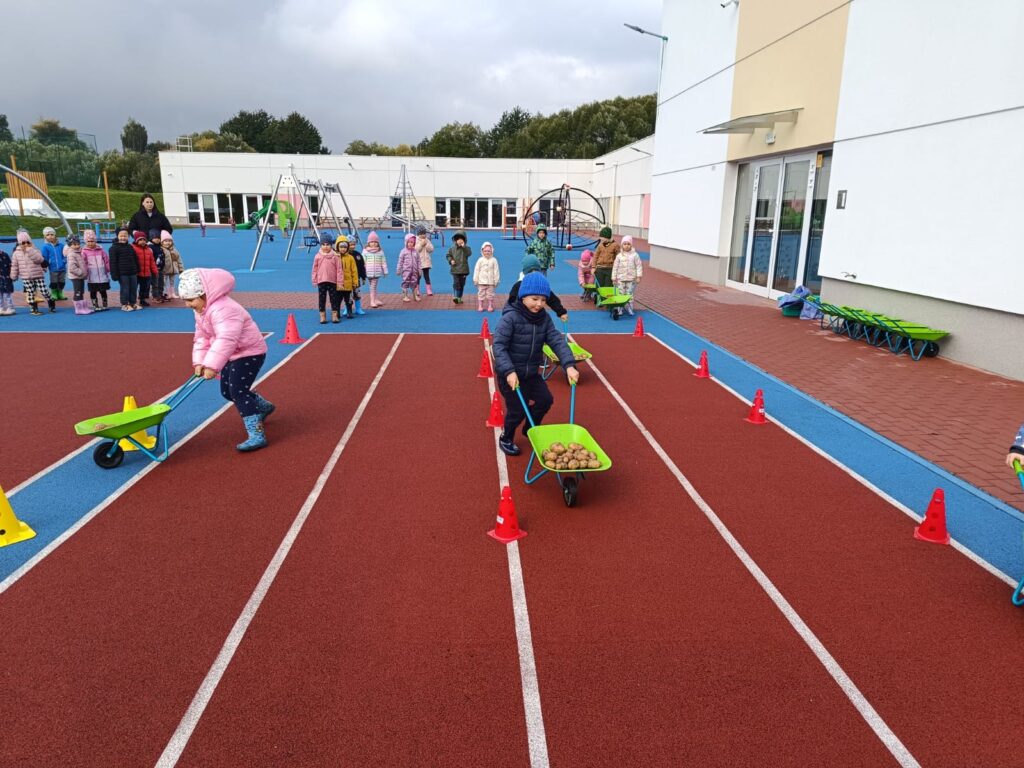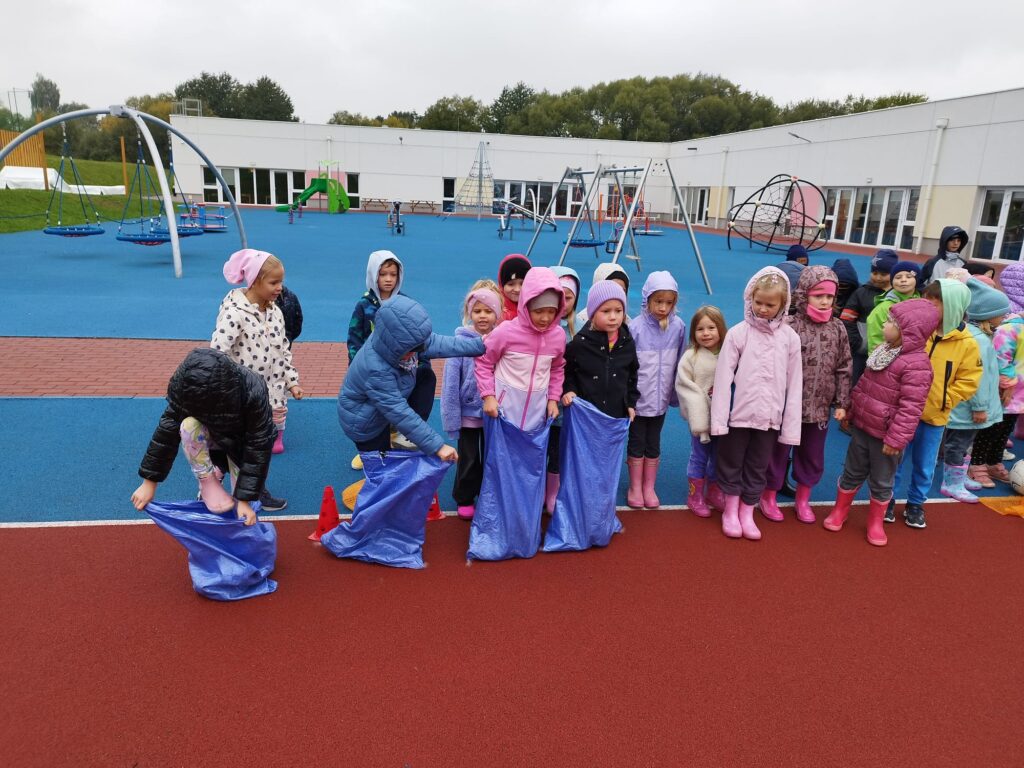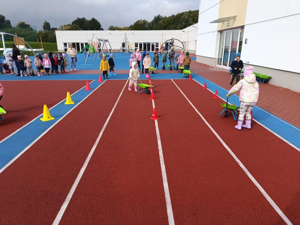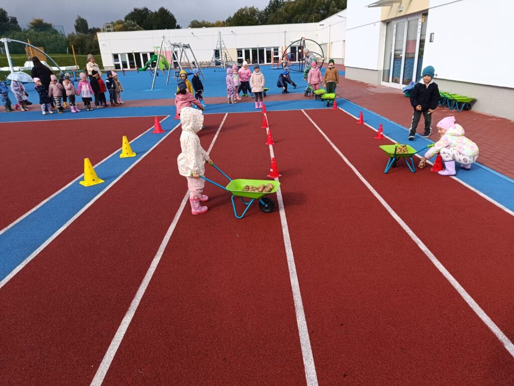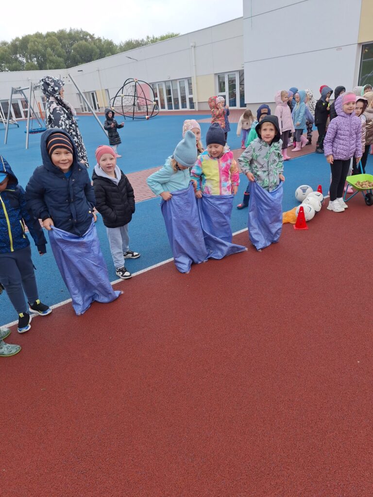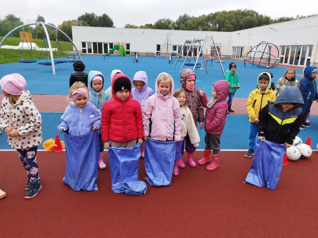 Nie zabrakło też świetnej zabawy: skoki w workach, slalom z taczkami , kodowanie, stemple oraz ścianka do zdjęć i to wszystko z bohaterem tego dnia, Ziemniakiem.