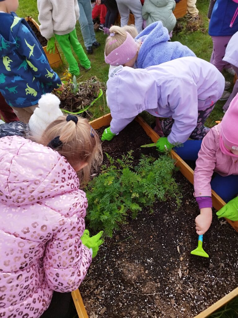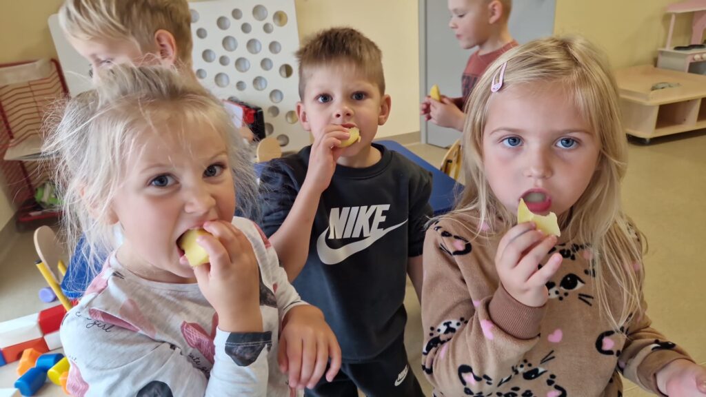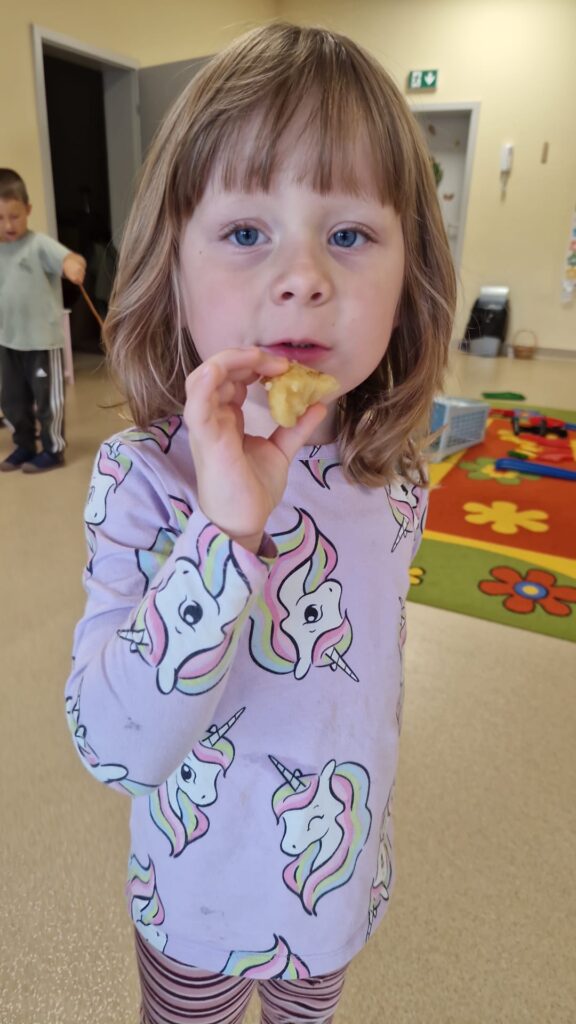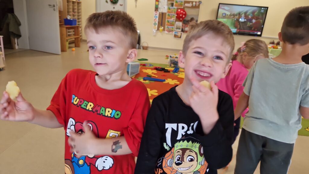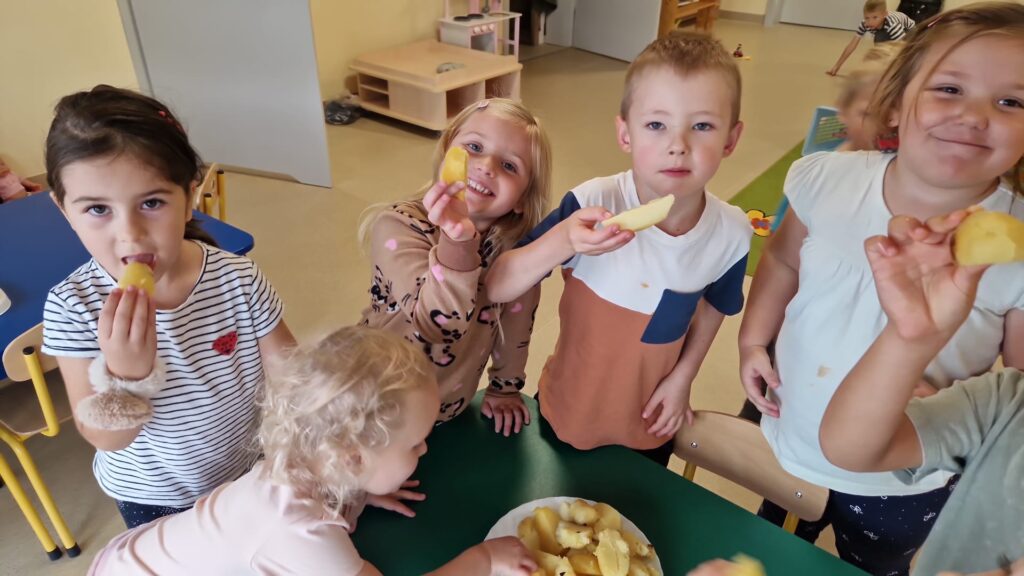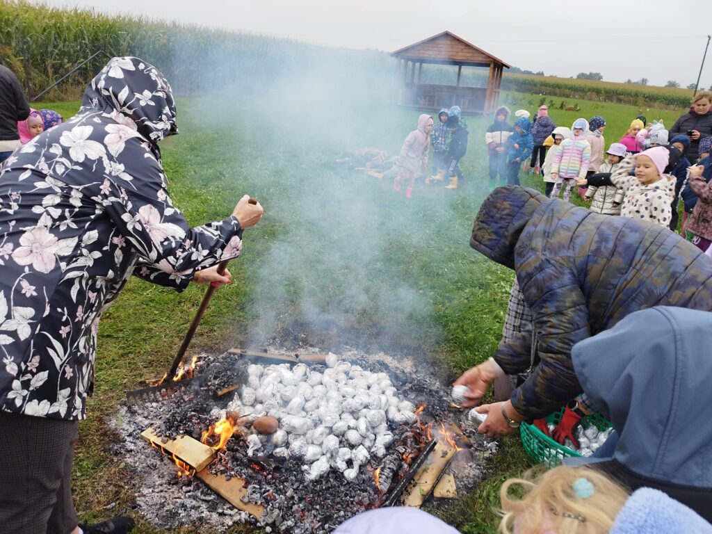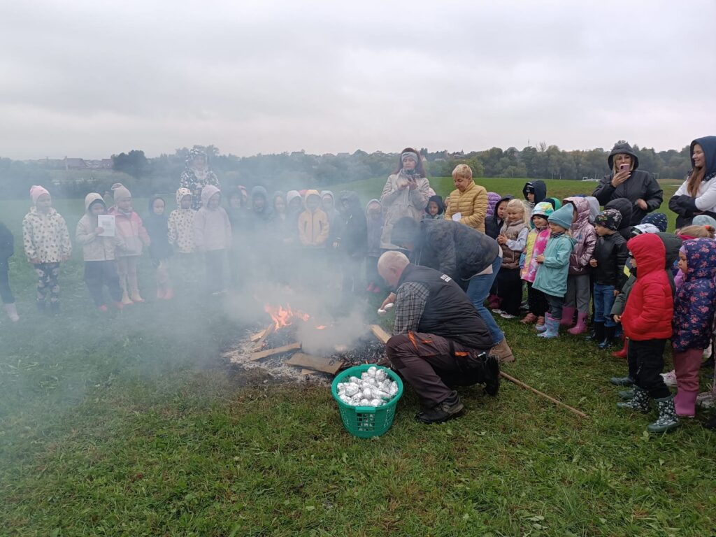 1 października świętowaliśmy w przedszkolu „Na Akacjowym Wzgórzu” Dzień Ziemniaka! Dzieci przyniosły ziemniaki, które później zostały upieczone w ognisku. Z zainteresowaniem obserwowały, jak pan konserwator wkładał je do żaru – a po chwili mogliśmy cieszyć się ich naprawdę pysznym smakiem!