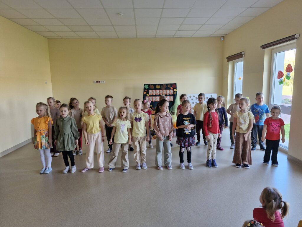 W Przedszkolu Publicznym „Na Akacjowym Wzgórzu” odbył się Poranek Jesienny. Każda z grup przygotowała piosenkę o tematyce jesiennej. Jak na przedszkolaków na medal przystało, śpiewały, wyklaskiwały rytmy, tańczyły i doskonale się przy tym bawiły. Poza występami dzieci wzięły udział w zabawie terenowej i poszukiwały skarbów jesieni. Na szczęście piękna pogoda nam dopisała i mogliśmy podziwiać też babie lato