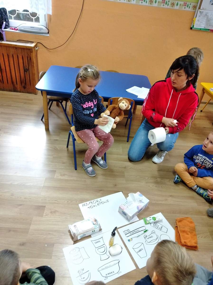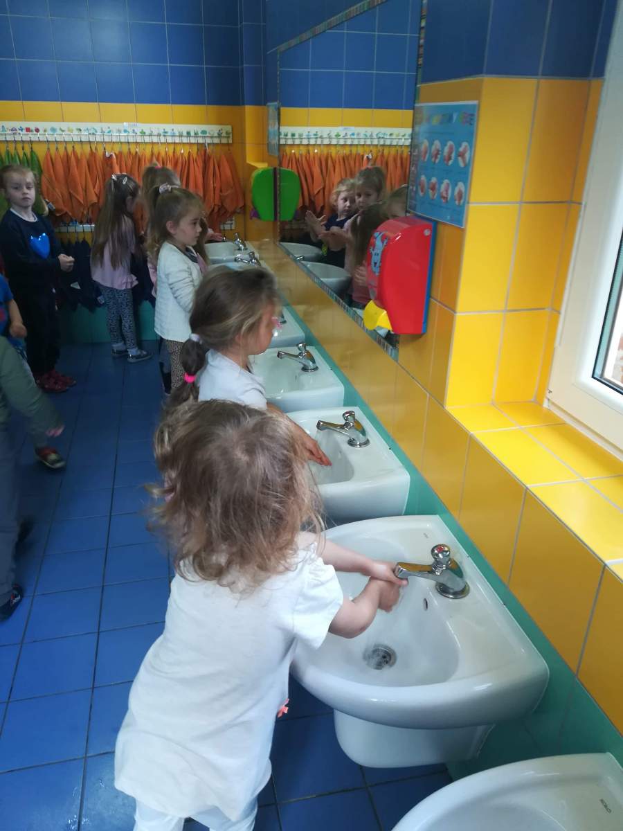 Drugim wydarzeniem był „Dzień Higieny”, także w ramach akcji „Zdrowo i Sportowo”. Odbył się w naszym przedszkolu 15 października, w dniu, w którym obchodzony jest „Światowy dzień mycia rąk”. Dzieci nabyły bądź odświeżyły wiadomości oraz umiejętności z zakresu higieny osobistej. Zostały z nimi omówione zasady higieny obowiązujące w placówce: od mycia rąk (po przyjściu do przedszkola, przed każdym posiłkiem, po każdej wizycie w toalecie), aż do instrukcji korzystania z toalety oraz prawidłowego mycia rąk.