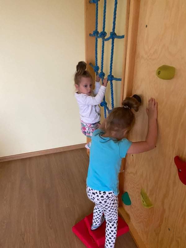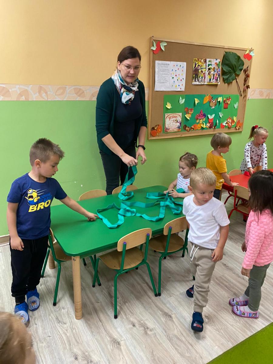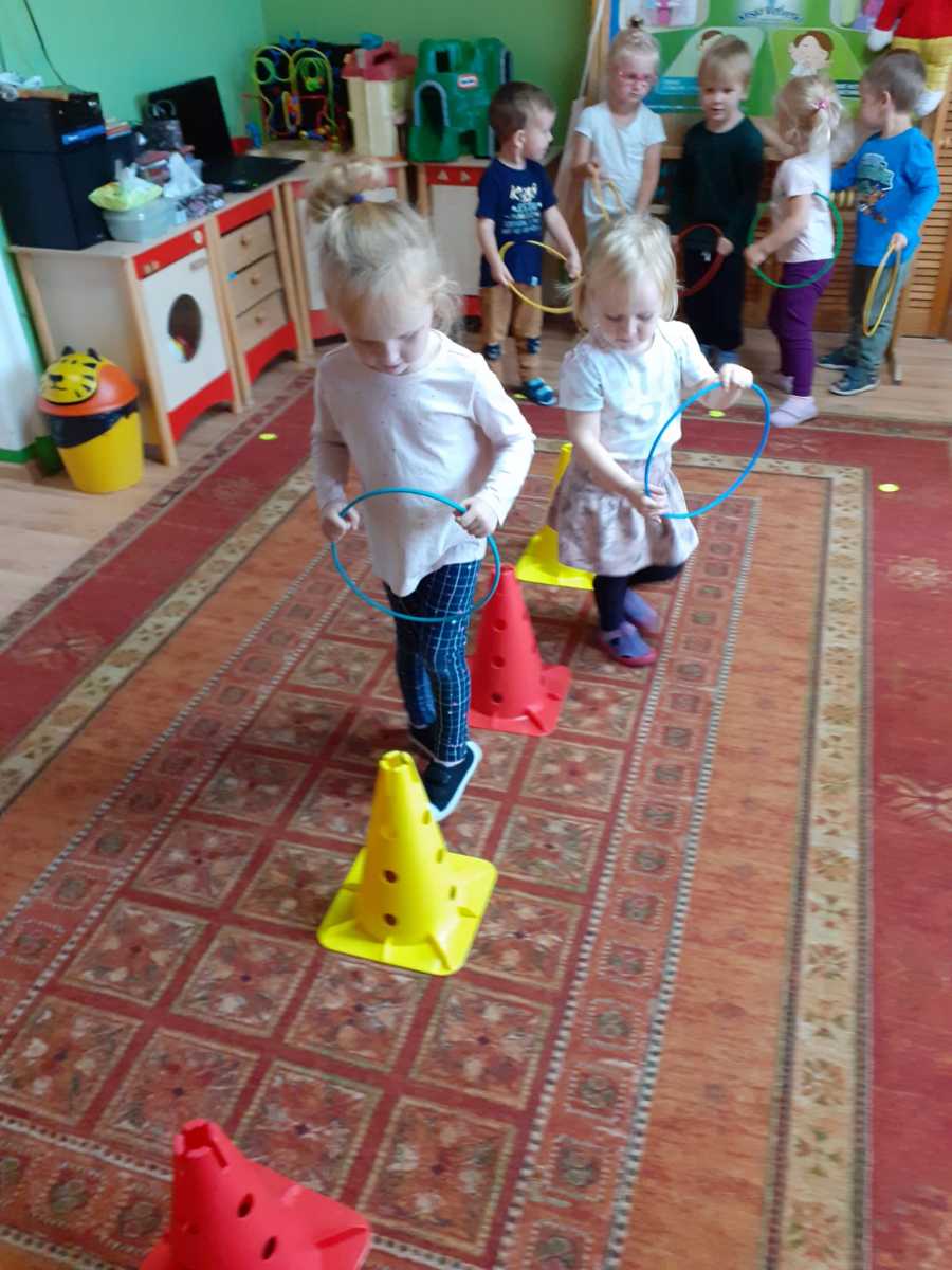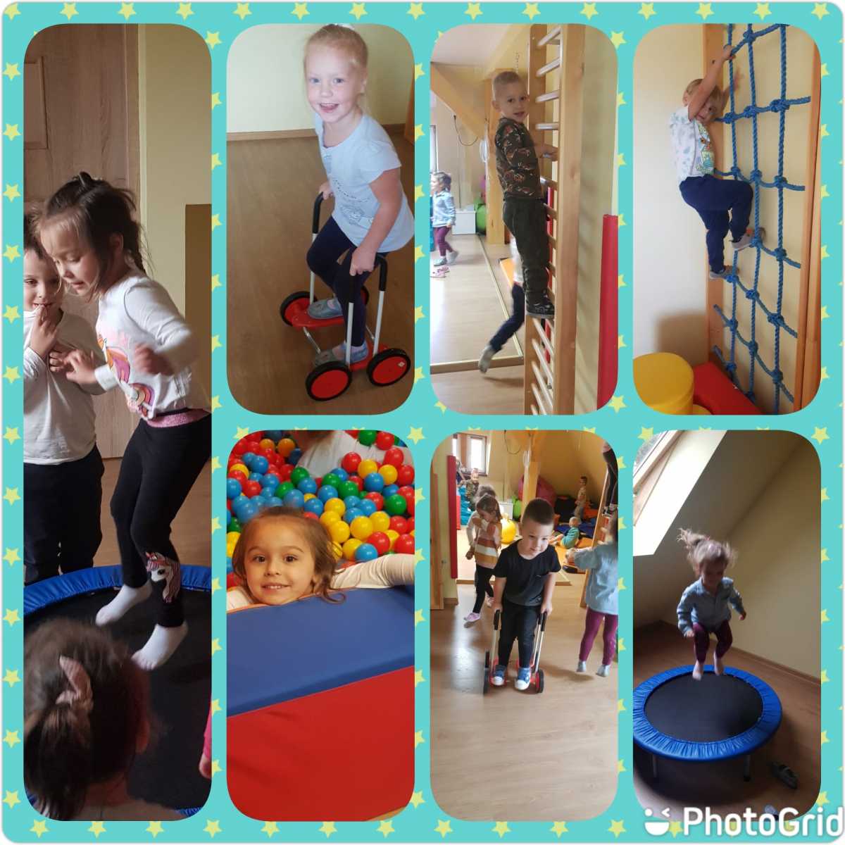 i prawidłowy rozwój naszych wychowanków, starałyśmy się w sposób, jak najbardziej efektywny wykorzystywać ten czas i zorganizować naszym pociechom ciekawe formy aktywności ruchowej. Jesteśmy przekonane, że rozwijanie aktywności ruchowej będzie procentowało w dorosłym życiu naszych przedszkolaków. W tym szczególnym tygodniu, oprócz codziennej gimnastyki i zabaw ruchowych, które goszczą u nas codziennie, dołączyłyśmy inne formy aktywności ruchowej – taniec, zajęcia w sali do integracji sensorycznej, zawody sportowe na świeżym powietrzu oraz wewnątrz przedszkola, zabawy