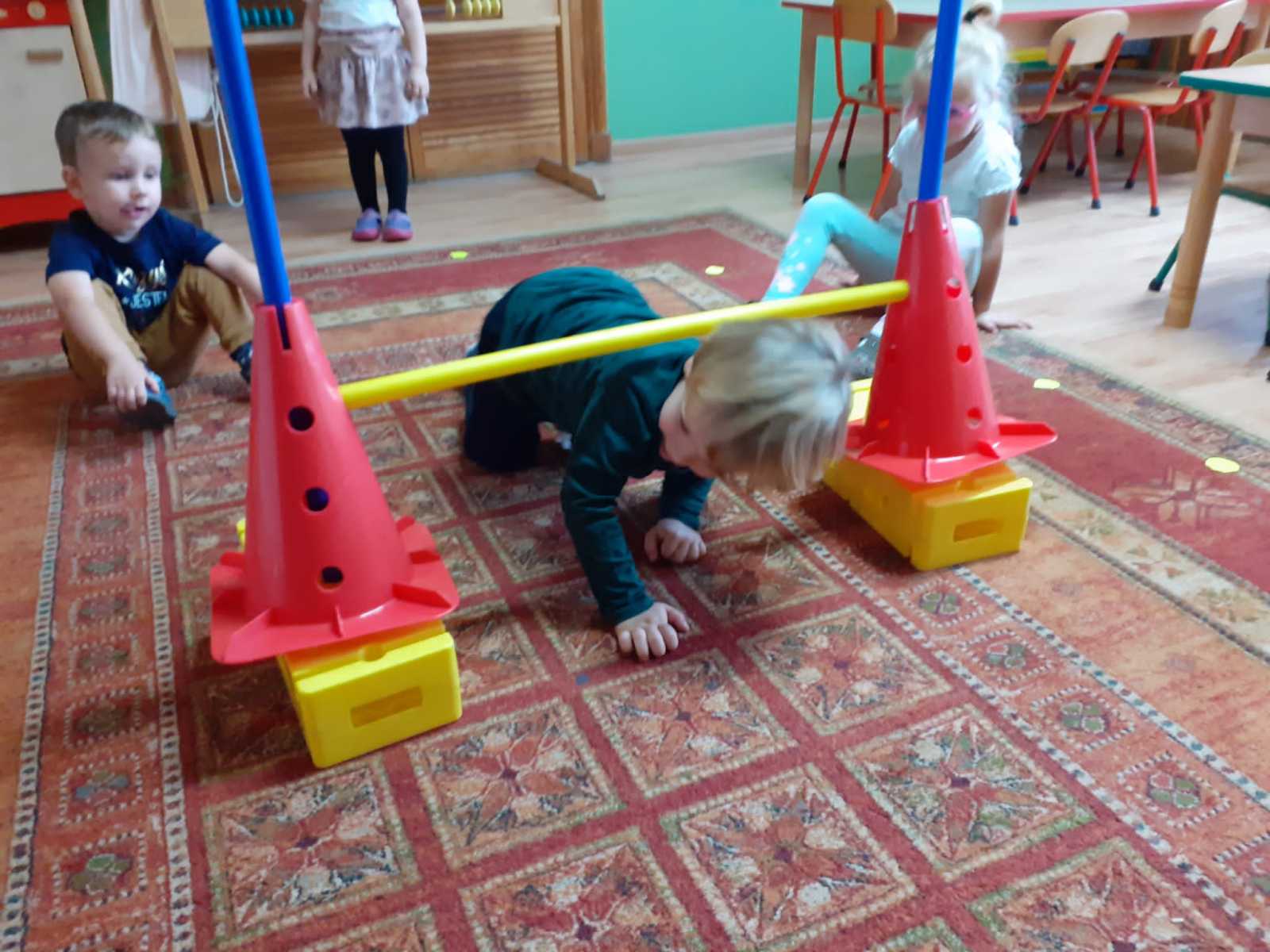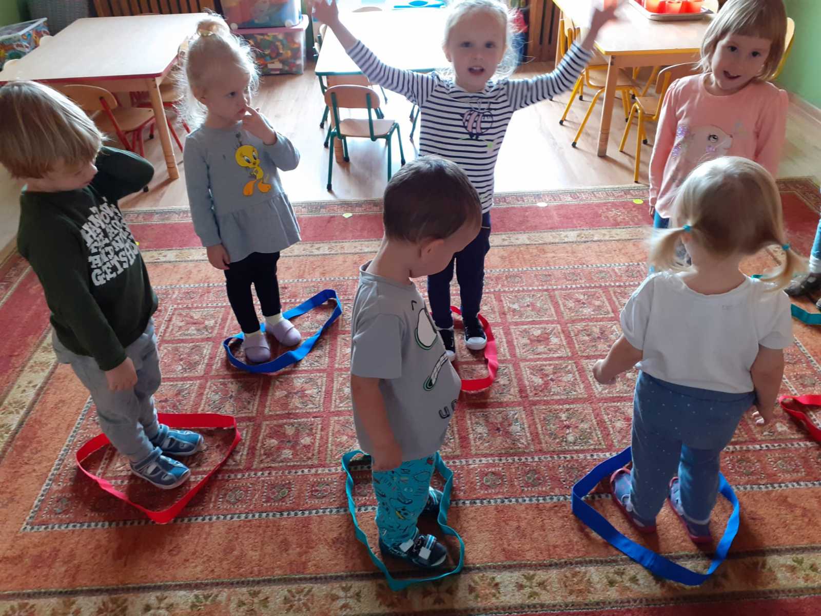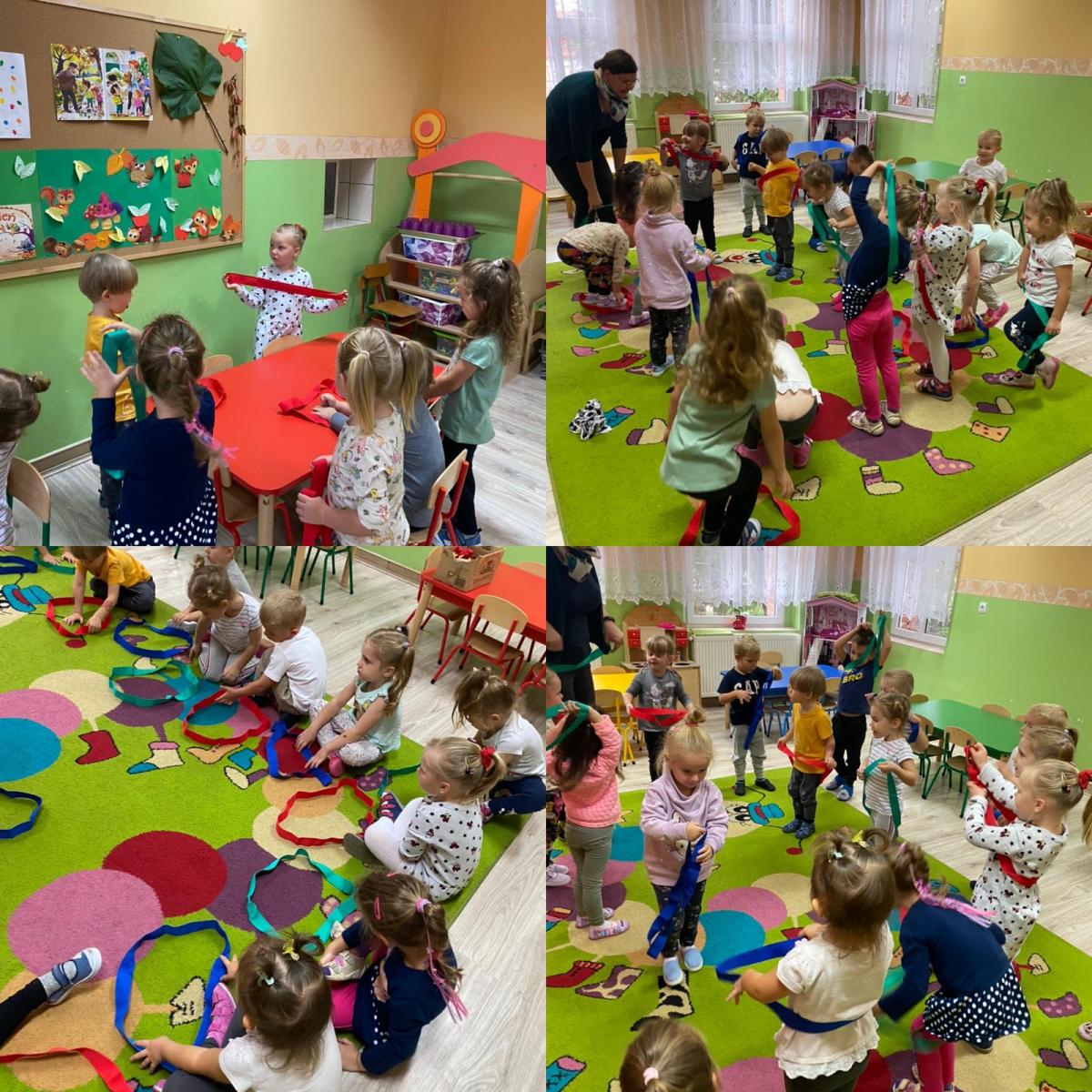 i prawidłowy rozwój naszych wychowanków, starałyśmy się w sposób, jak najbardziej efektywny wykorzystywać ten czas i zorganizować naszym pociechom ciekawe formy aktywności ruchowej. Jesteśmy przekonane, że rozwijanie aktywności ruchowej będzie procentowało w dorosłym życiu naszych przedszkolaków. W tym szczególnym tygodniu, oprócz codziennej gimnastyki i zabaw ruchowych, które goszczą u nas codziennie, dołączyłyśmy inne formy aktywności ruchowej – taniec, zajęcia w sali do integracji sensorycznej, zawody sportowe na świeżym powietrzu oraz wewnątrz przedszkola, zabawy