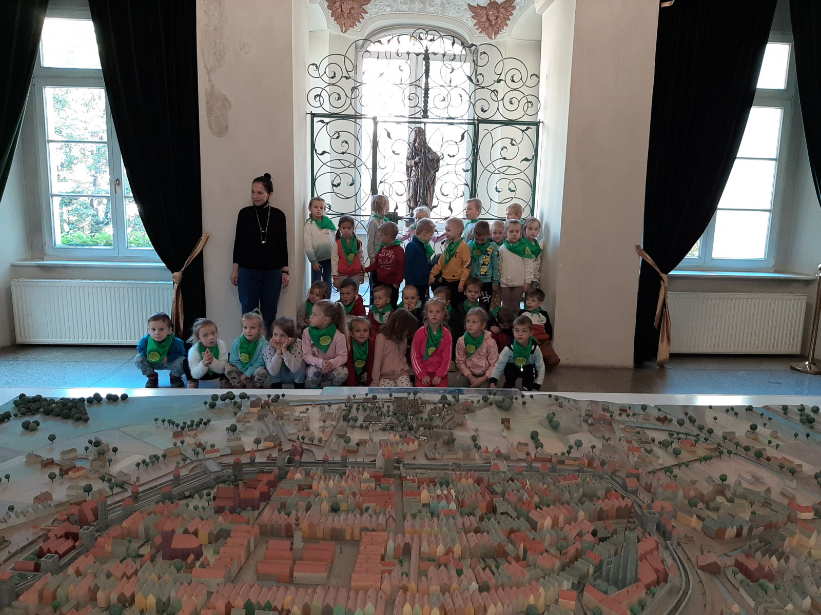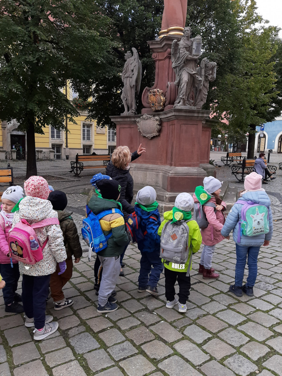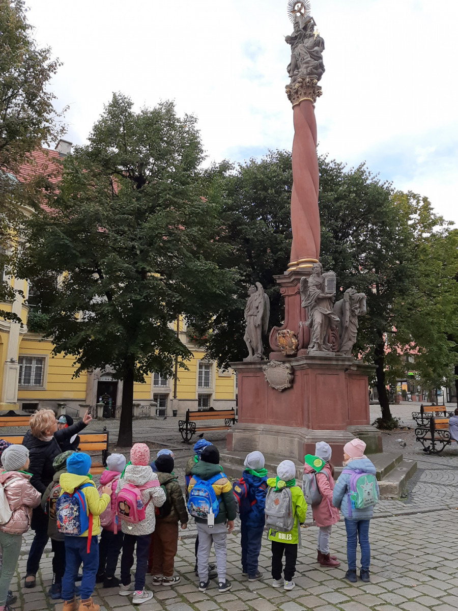 historii w jaki sposób transportowano niegdyś towary oraz jak wyglądała dawna Świdnica. Kolejnym celem naszej podróży była wieża ratuszowa. Przedszkolaki wyjechały ma sam jej szczyt aby stamtąd podziwiać piękne widoki. Następnie przechodząc przez rynek masz wzrok przykuły piękne fontanny oraz Kolumna Św.Trójcy. Końcowym przystankiem naszej wycieczki był przepiękny Kościół Pokoju. Dzieci w ciszy i skupieniu zaglądnęły do środka. Przez krótką chwilę mogliśmy posłuchać wspaniałej muzyki organowej. Mamy nadzieję, że kolejna przygoda będzie równie ciekawa.