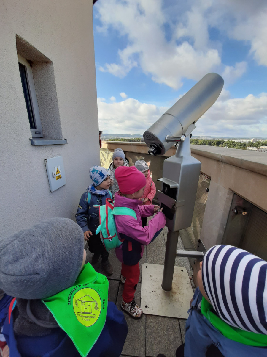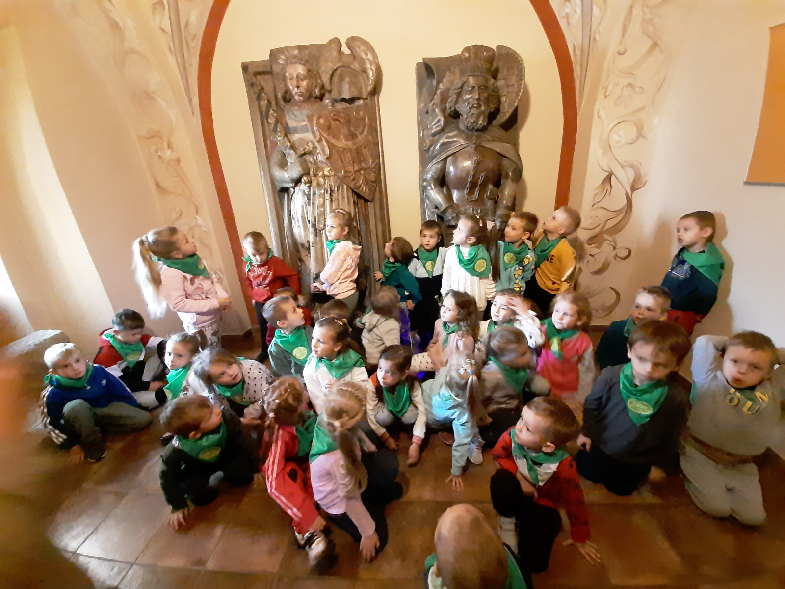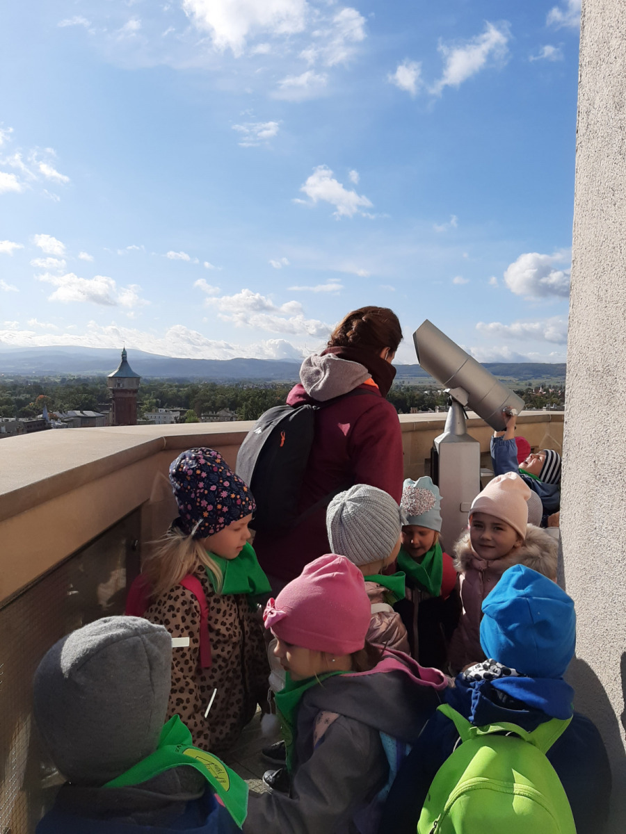historii w jaki sposób transportowano niegdyś towary oraz jak wyglądała dawna Świdnica. Kolejnym celem naszej podróży była wieża ratuszowa. Przedszkolaki wyjechały ma sam jej szczyt aby stamtąd podziwiać piękne widoki. Następnie przechodząc przez rynek masz wzrok przykuły piękne fontanny oraz Kolumna Św.Trójcy. Końcowym przystankiem naszej wycieczki był przepiękny Kościół Pokoju. Dzieci w ciszy i skupieniu zaglądnęły do środka. Przez krótką chwilę mogliśmy posłuchać wspaniałej muzyki organowej. Mamy nadzieję, że kolejna przygoda będzie równie ciekawa.