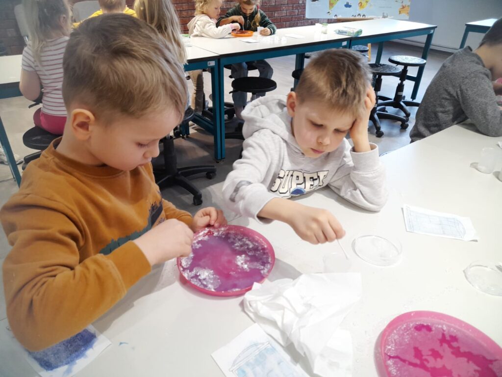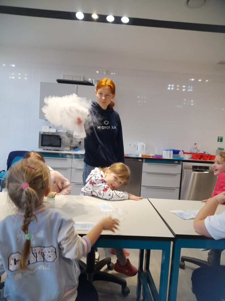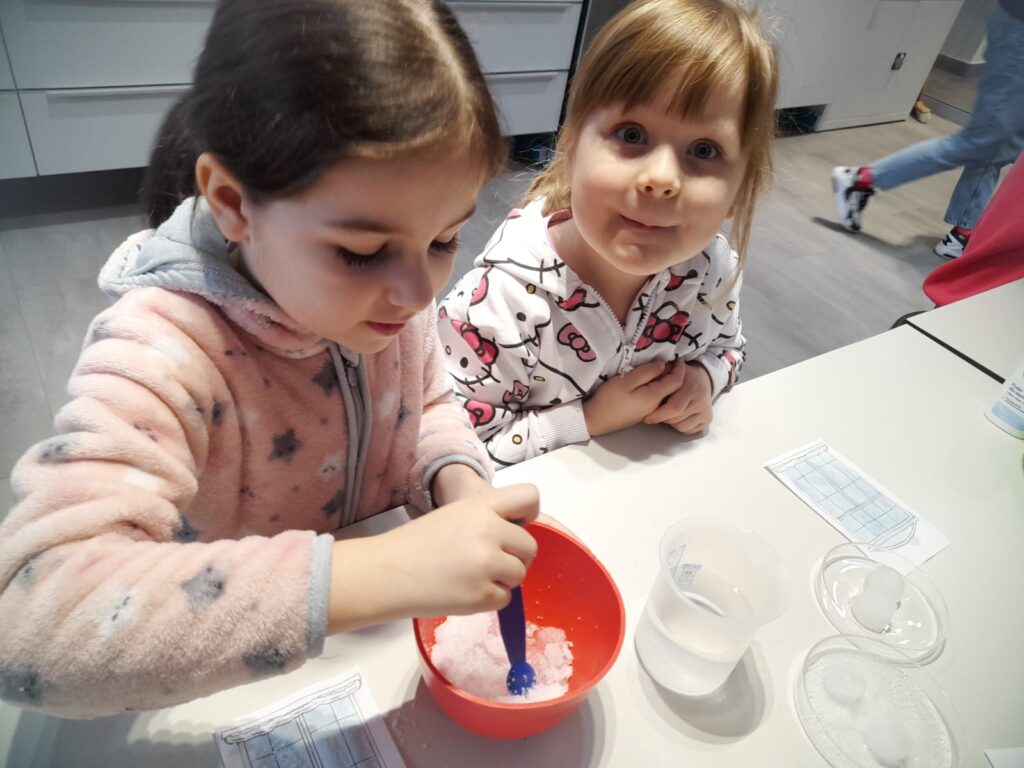 Podczas pobytu dzieci uczestniczyły w specjalnie przygotowanych warsztatach edukacyjnych. W trakcie zajęć miały okazję dowiedzieć się, jak powstaje lód, jakie są jego właściwości oraz gdzie w przyrodzie można go spotkać. Mogły również obserwować doświadczenia, zadawać pytania oraz aktywnie brać udział w prostych eksperymentach. Dzięki temu nauka stała się dla nich ciekawą przygodą.