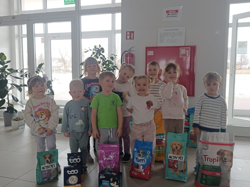 W listopadzie nasze przedszkole zorganizowało zbiórkę darów dla potrzebujących zwierząt ze schroniska „Azyl” w Dzierżoniowie. Dzięki zaangażowaniu dzieci, rodziców i pracowników udało się zebrać karmę dla psów i kotów, a także środki czystości. Wszystkie zebrane dary zostały przekazane do schroniska, gdzie z pewnością pomogą w zapewnieniu zwierzętom lepszych warunków i odrobiny radości.