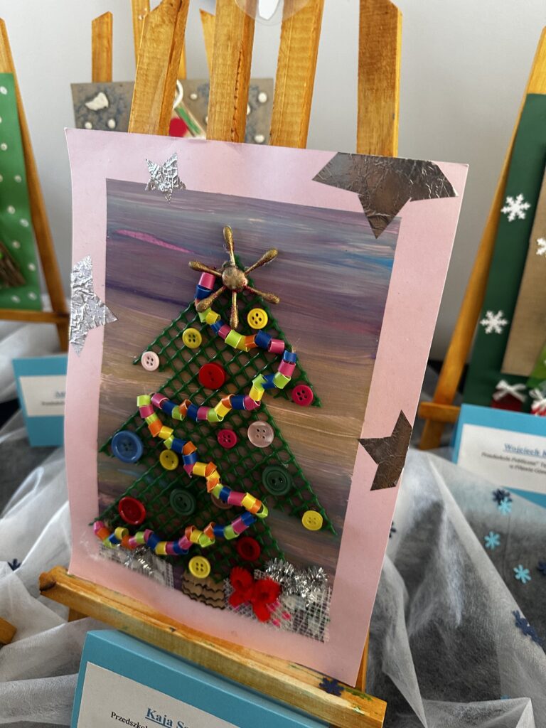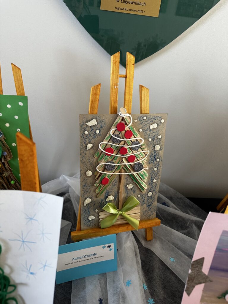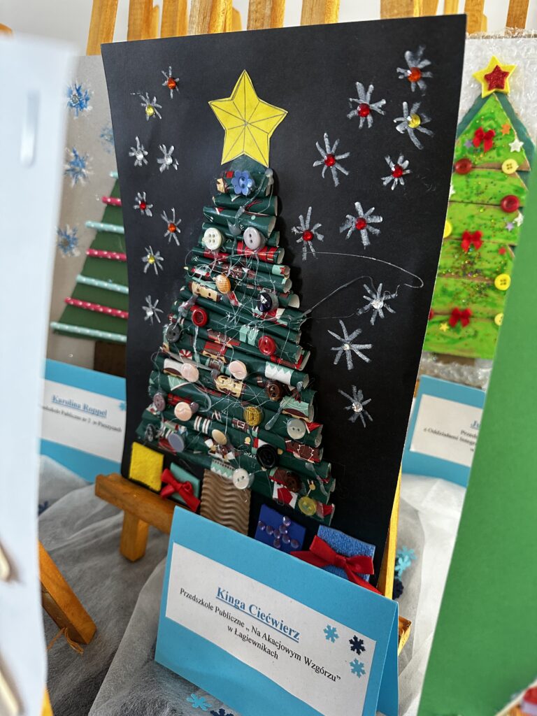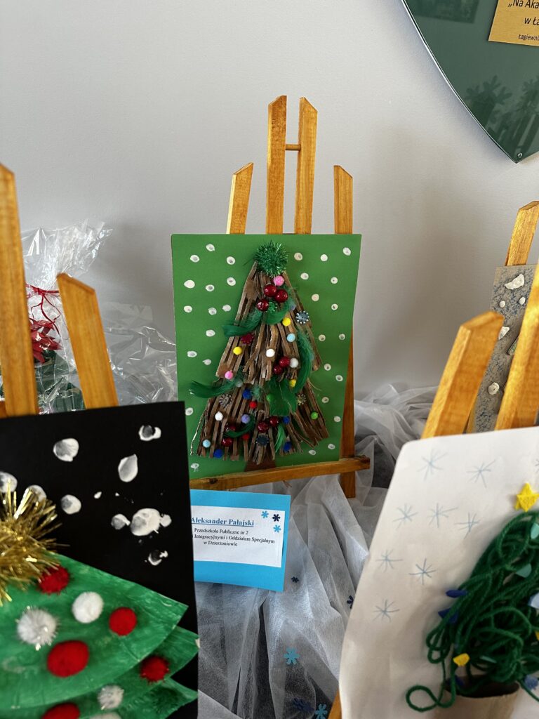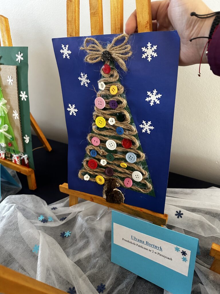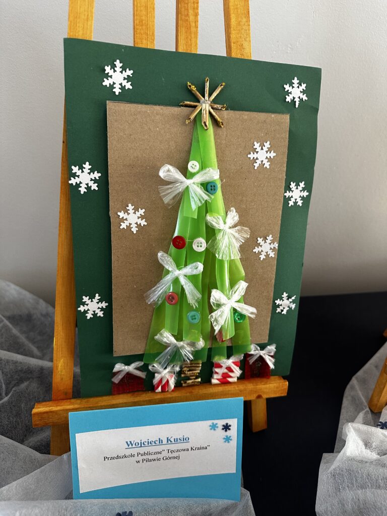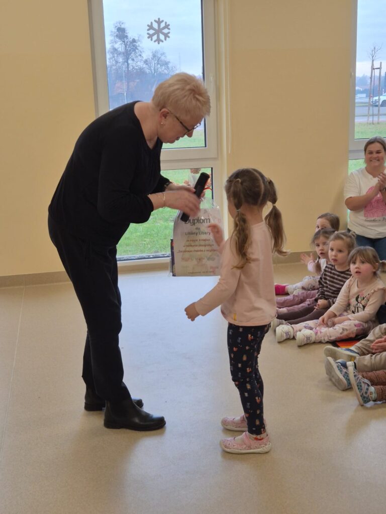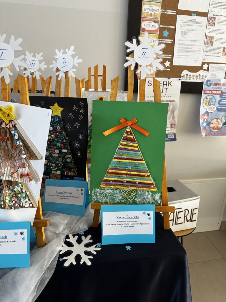 Zwieńczeniem zimowego poranka była miła i uroczysta chwila – Pani Dyrektor Dorota Zarzycka wręczyła dyplomy oraz nagrody dzieciom biorącym udział w konkursie powiatowym „Choinka z recyklingu” organizowanym przez nasze przedszkole. Wystawę prac można oglądać w holu przedszkola.